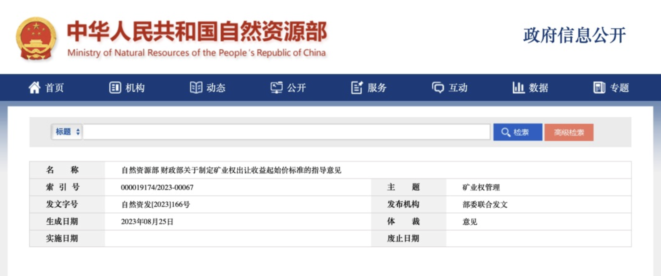 重要文件!礦業(yè)權出讓收益起始價標準發(fā)布